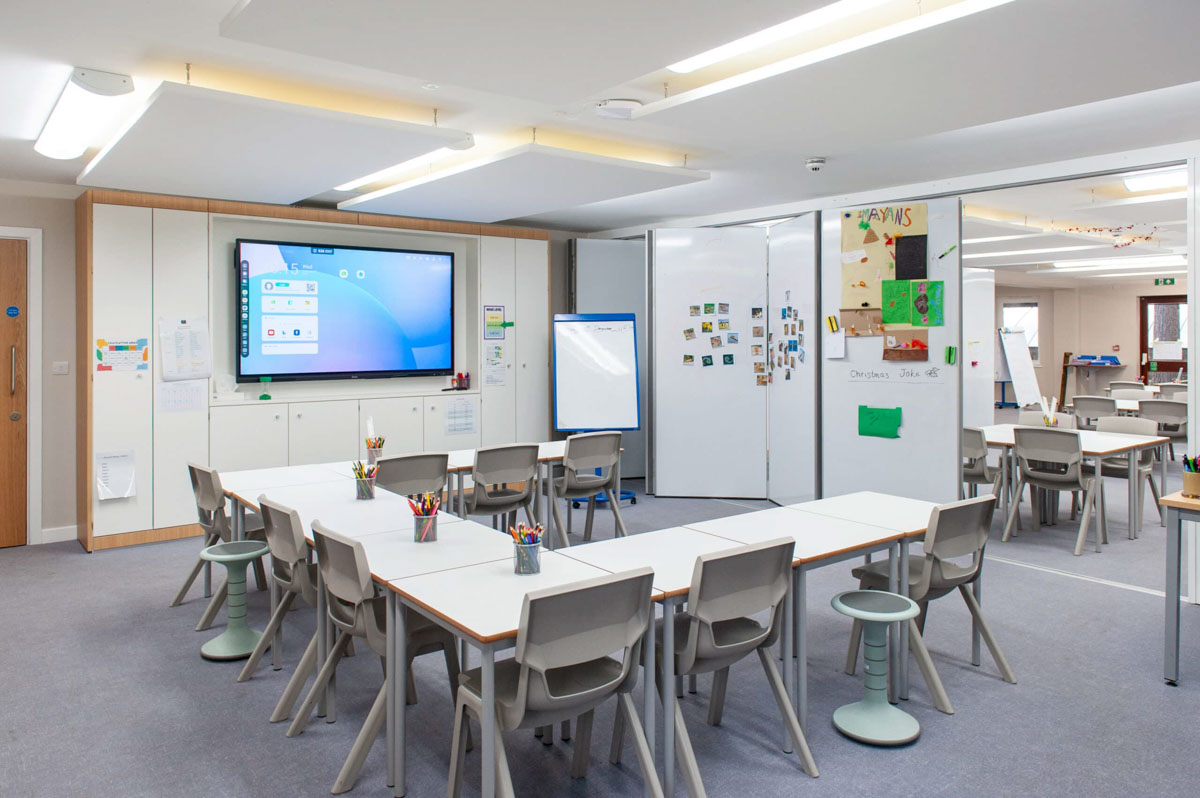 Thoát khỏi những thiết kế và cách bày bố bàn ghế từng dãy theo kiểu truyền thống, các ý tưởng thiết kế phòng học với cách xếp bàn ghế theo các cụm bàn nhỏ, chia học viên thành những nhóm nhỏ bắt đầu được yêu thích hơn. Bởi nó tạo nên sự liên kết giữa các học viên, thúc đẩy họ trò chuyện với nhau, nó đặc biệt hiệu quả cho các phòng dạy các môn về ngoại ngữ.